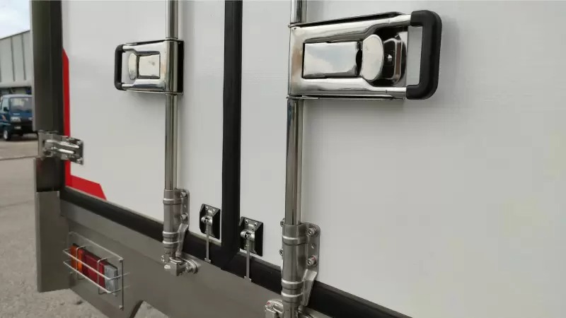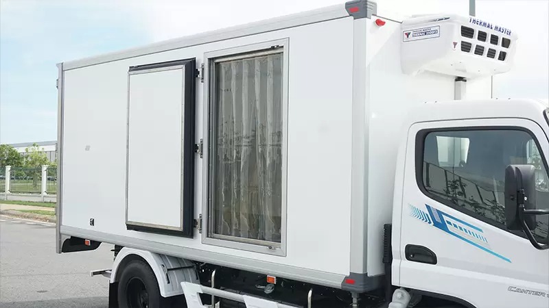 Rèm ngăn nhiệt ở cửa sau và cửa hông giúp giảm thất thoát nhiệt khi mở cửa thùng.