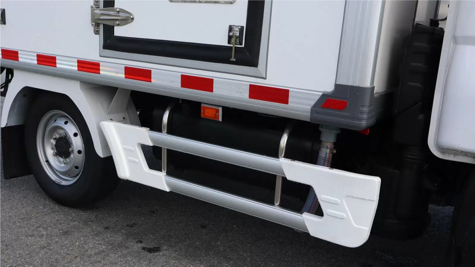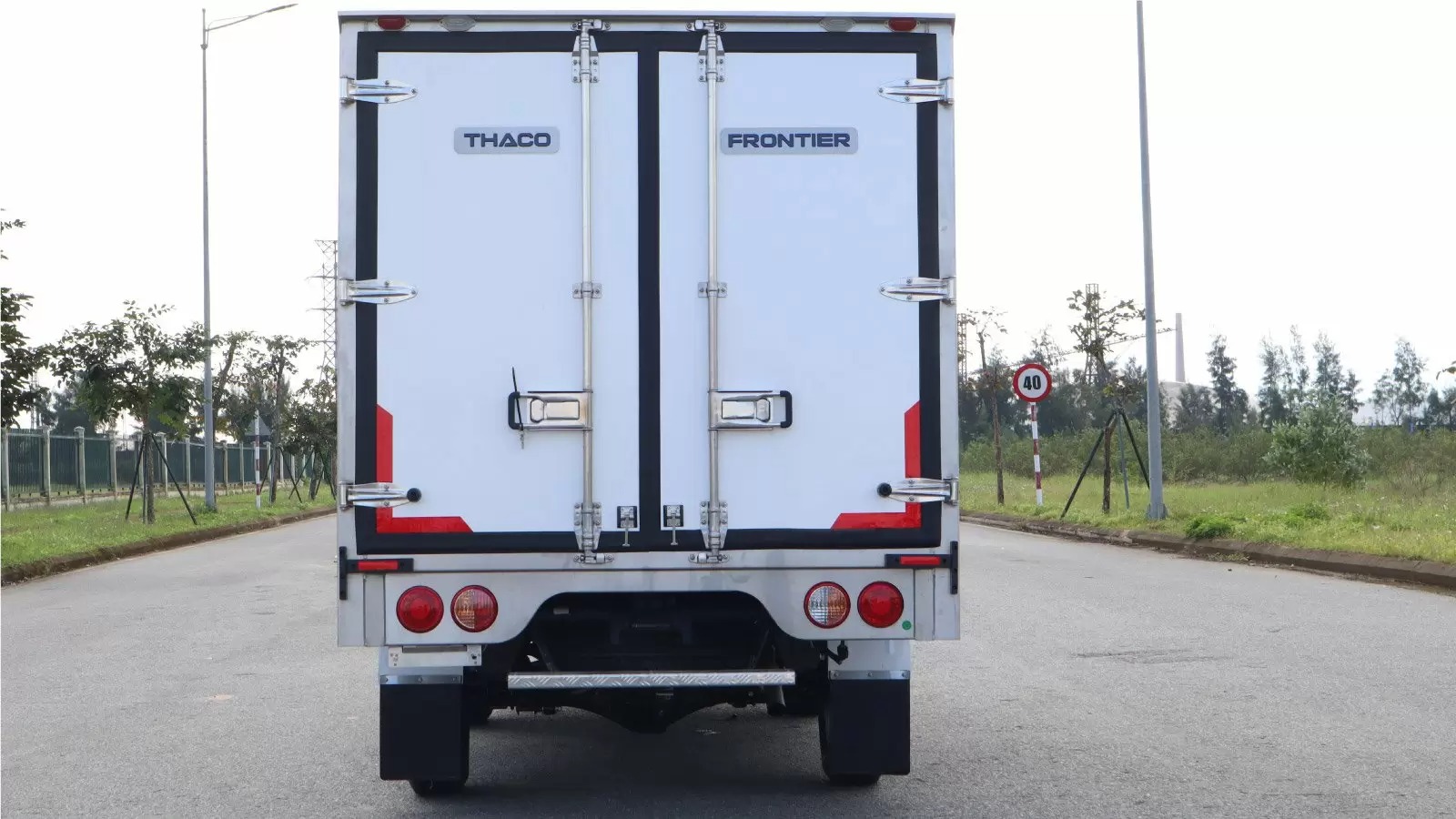 Cửa sau 2 cánh mở kiểu container thuận tiện xếp, dỡ hàng hóa. Khung bao ngoài cửa sau bằng Inox304 tăng tính thẩm mỹ, không bị oxy hóa theo thời gian.