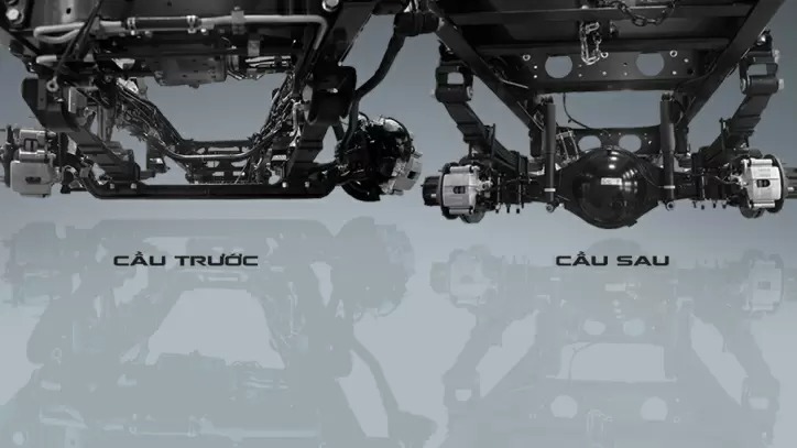 Cầu trước: Dầm chữ “I” Cầu sau: Khả năng chịu tải lớn. tỷ số truyền cầu lớn, cứng vững, vận hành mạnh mẽ.