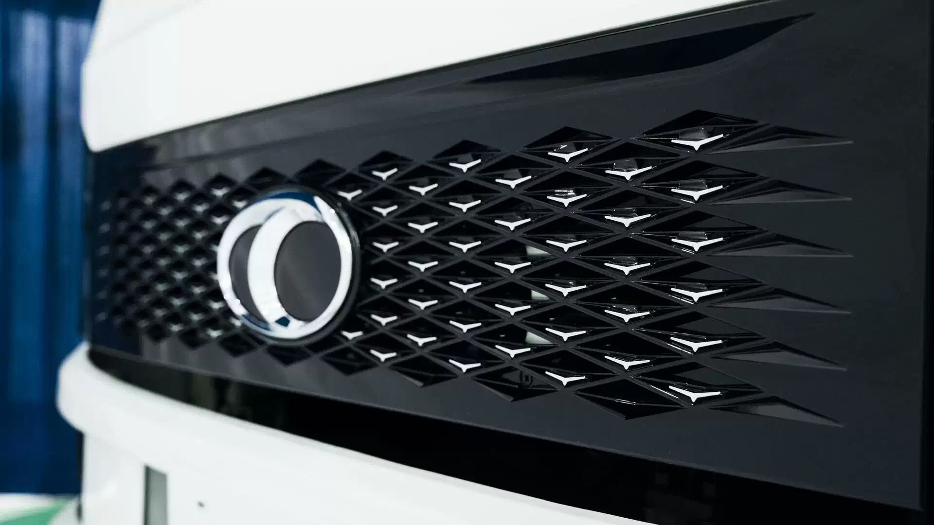 Với cấu trúc hình thoi liên kết với nhau tạo sự chuyển động khi tương tác với ánh sáng. Họa tiết là điểm nhận diện chính được vát cạnh mạnh mẽ, cách điệu từ chữ “T” của thương hiệu THACO TRUCK.