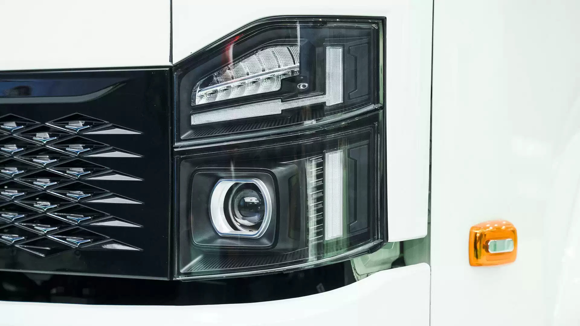 Mặt ga-lăng thiết kế cấu trúc hình thoi nổi bật. Đèn Halogen Projector cường độ chiếu sáng cao cùng gương cầu lồi và kính 2 lớp tràn viền, tối ưu tầm quan sát và an toàn.