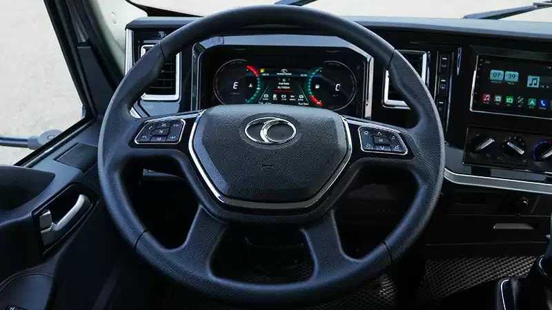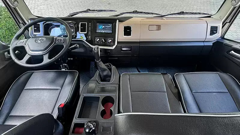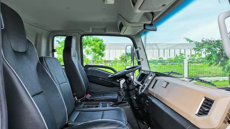 Cabin rộng rãi, bố trí khoa học với đầy đủ tiện ích hỗ trợ người lái. Ghế ngồi bọc vật liệu cao cấp, tích hợp giường nằm tiện lợi; vô lăng 4 chấu đa chức năng, táp lô LCD 7 inch hiển thị rõ ràng thông tin, kết hợp điều hòa hai chiều và màn hình AVN 7 inch hỗ trợ Bluetooth, đáp ứng hiệu quả nhu cầu vận hành và giải trí.