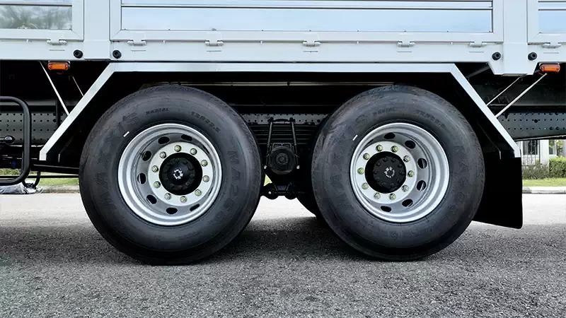 Xe được trang bị đồng bộ lốp 12R22.5 loại có ruột, bố thép.