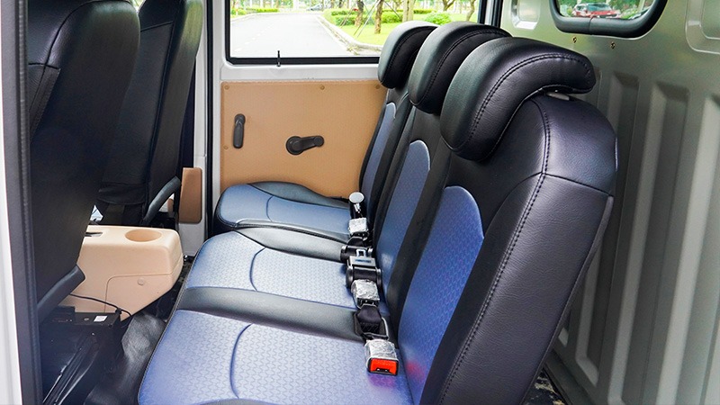 Nội thất thiết kế rộng rãi, tiện nghi, hệ thống điều khiển bố trí khoa học, dễ thao tác cho người lái: Ghế ngồi bọc simili cao cấp, điều hòa 2 chiều, đ ồng hồ T aplo màn hình LED, kính cửa điều chỉnh nâng hạ bằng điện. Đặc biệt, h àng ghế sau được bố trí 03 ghế ngồi, có thể gập gọn để tăng không gian chở hàng.